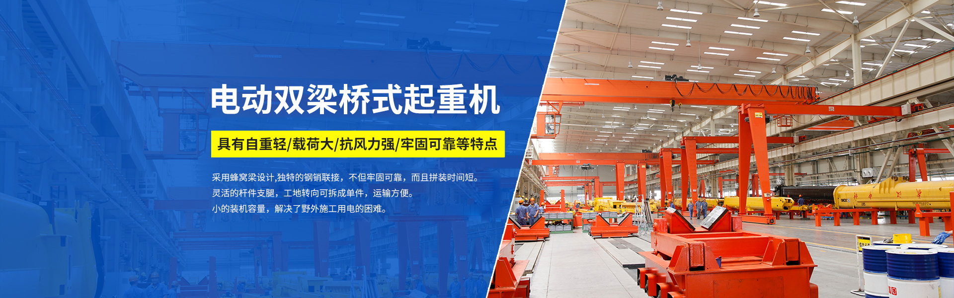 在野外施工場(chǎng)景中,用電往往是一大難題,而杭州起重機(jī)推出的電動(dòng)雙梁橋式起重機(jī),為解決這一問(wèn)題帶來(lái)了... 了解詳細(xì)>>2025-09-15杭州起重機(jī):電動(dòng)雙梁橋式起重機(jī),自重輕與載荷大的巧妙融合